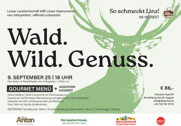 Wildspezialitäten waren das fünfte Thema im Rahmen der Veranstaltungsreihe "So schmeckt Linz!" ... und nach den vier Abendveranstaltungen fand diese erstmals als Mittagstisch am Sonntag statt – im Gasthof Hauermandl in Linz-Pichling. Mehr als 90 Gäste ließen sich das "wilde" Menü schmecken.